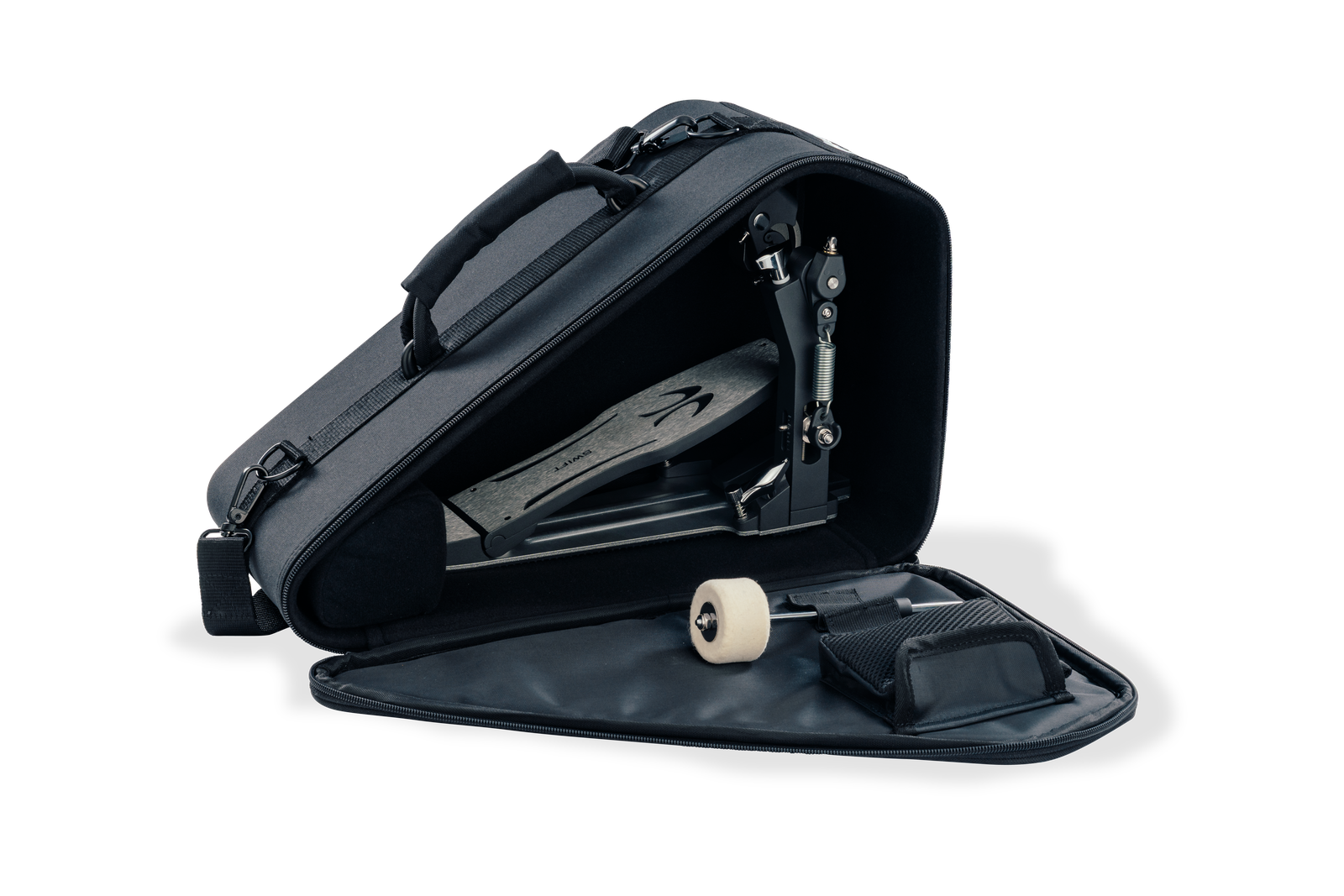 - Unabhängig verstellbarer Beater Hub erlaubt die Anpassung des Schlagkopf-Winkels ohne Einfluss auf den Winkel des Fusspedals